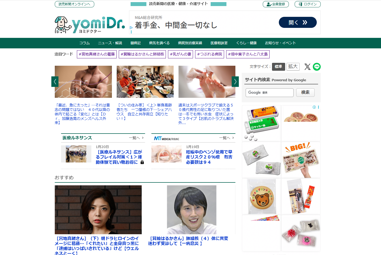 ヨミドクターは、読売新聞社が運営する医療・健康・介護分野に特化した総合情報サイトです。病気や医療制度、介護、健康維持、妊娠・育児、シニアケアなど幅広いテーマを扱い、専門医や記者、著名人によるコラムや連載、最新の医療ニュースを提供しています。