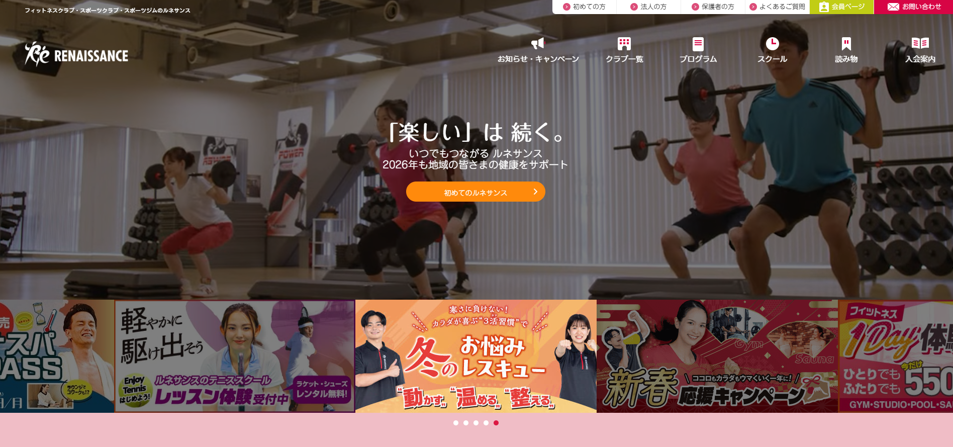 スポーツクラブ ルネサンスは、大人から子どもまで楽しめる会員制の総合スポーツクラブです。