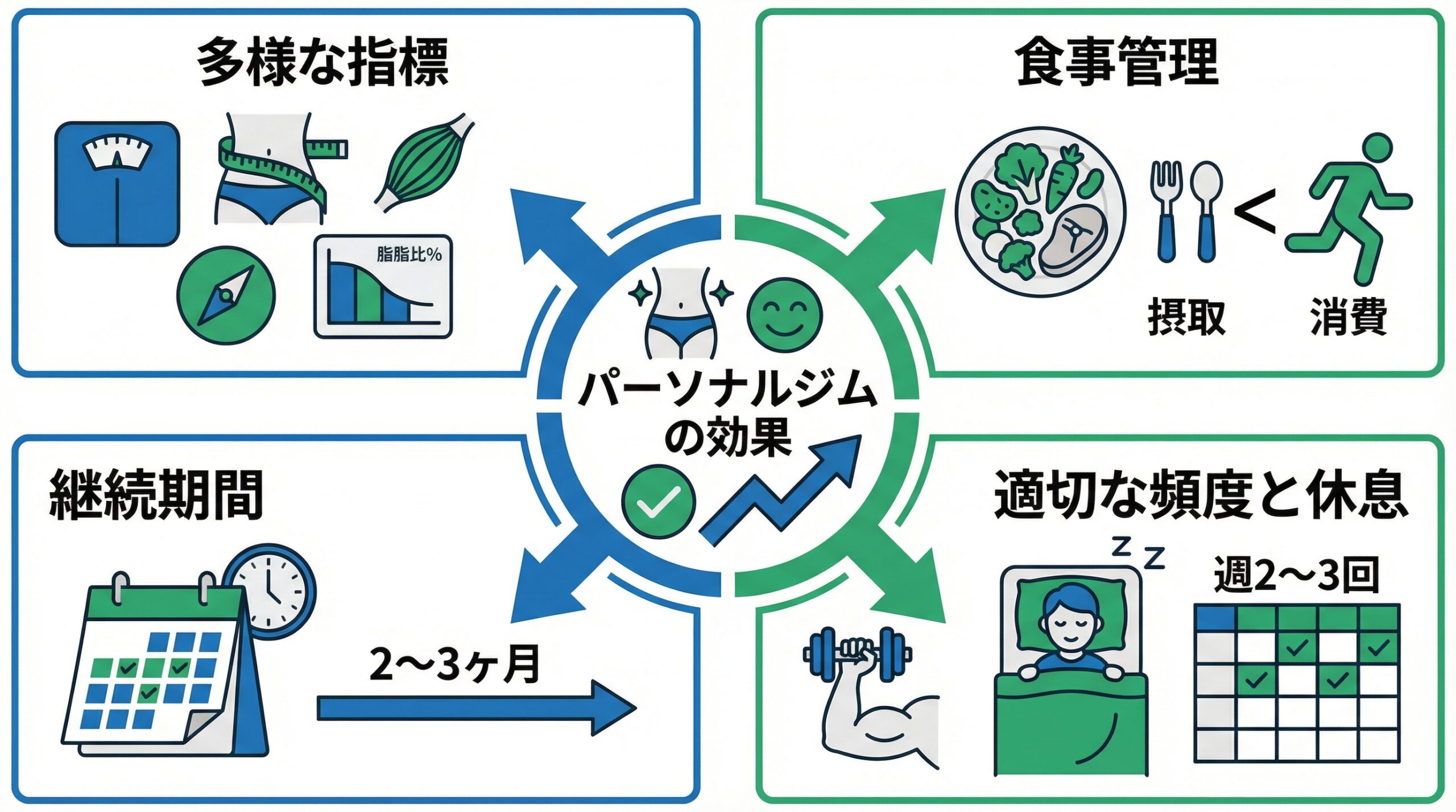 パーソナルジムに通っても痩せないと感じるときは、体重だけで効果を決めず、体脂肪率やサイズ、体調、写真なども含めて見直すと状況が整理しやすくなります(参照*1)。そのうえで、食事と生活、継続の形を点検すると、原因が見つかりやすいです。